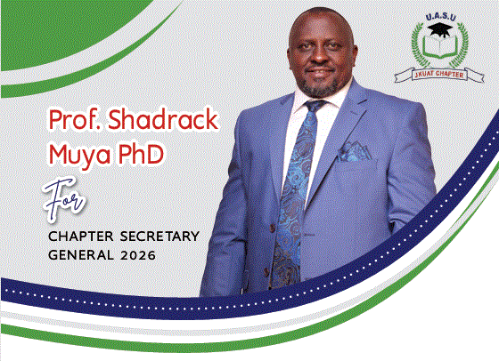 Dear Colleagues, I, Prof. Shadrack Muya, sincerely appreciate your continued trust and support. I once again humbly seek your mandate for re-election as your UASU JKUAT Chapter Secretary General for a second term. Together, we have strengthened our Chapter structures, enhanced digital communication, improved responsiveness in resource allocation, and advanced the agenda BREW 1.0 (B…